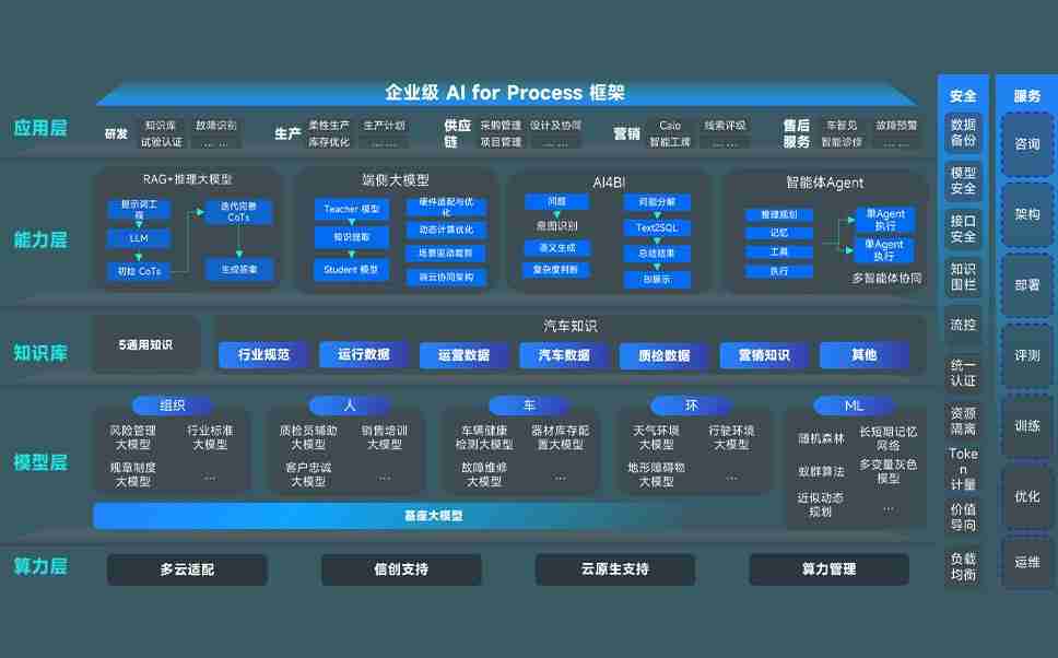 尊龙集团问学智车解决方案是一套基于AI技术的汽车行业智能化系统,,覆盖从底层算力到顶层AI应用的全栈方案。。。。方案由算力层、、、、模型层和应用层组成:算力层,,,,方案支持多种一体机配置,,具备云端灵活部署、、、多云适配以及动态优化计算资源的能力;模型层,,,尊龙集团问学平台版提供了企业级AI应用一站式构建与管理平台,,,,支持基于后训练强化技术的汽车企业专属模型的训练、、、评测和运营;应用层,,,,尊龙集团问学DeepSeek版提供包括超级员工、、、、智能招采、、、智能营销、、、、智能客服、、、AI for BI等一系列解决方案,,,,可助力汽车行业实现数字化转型,,让管理更智能、、响应更敏捷。。。